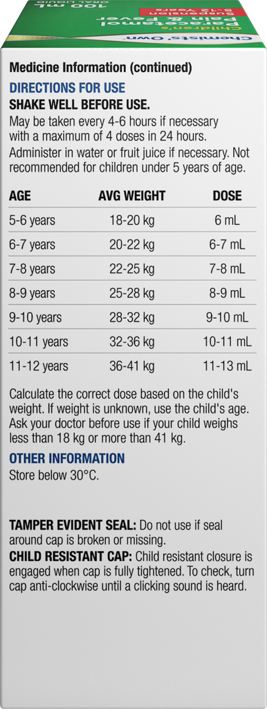 Chemist Own Paracetamol Suspension 100mls 5-12years
